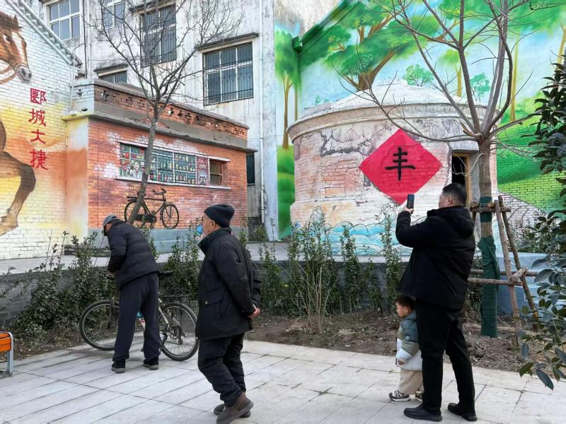 “你看这自行车跟真的一样!”“墙上这放学的场景,一下子就把我拉回小时候了……”1月9日,漯河市郾城区龙塔街道南街社区一个口袋公园内,市民站在展现本土风情的文化墙旁纷纷感叹。一旁改造后的复古粮仓与文化墙相映成趣,引得市民纷纷拍照打卡。