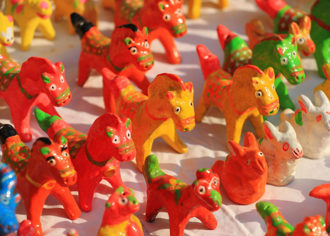 淮滨“泥叫吹”属于陶哨,俗称“小叫吹”。品种有十二生肖,百鸟朝凤,龙腾虎跃,戏曲人物等,色彩鲜艳,造型美观,具有浓厚的生活气息。“泥叫吹”不仅是玩具,更是记录农耕文明的“活化石”。作为省级非物质文化遗产,目前,淮滨“泥叫吹”与淮阳泥泥狗,浚县泥咕咕并称为河南三大民间泥彩塑。
