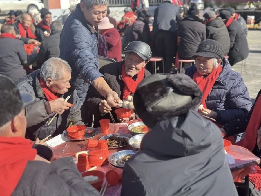当天,流西河村“三个一”暨幸福乡村行文明实践活动温情启幕,该村乡贤们带着对家乡的深厚情谊,为村里的老人们送来了长寿面、食用油、洗衣液等生活用品;驻村工作队为乡亲们带来了新鲜的水果、可口的零食,用实际行动表达对乡亲们的关爱。流西河村的党员干部为村里每一位70岁以上老人精心准备了羊绒围巾。“大叔大娘,您看戴上这大红围巾多喜庆。走,大食堂饭菜端上来了,咱去尝尝新厨师的手艺,有鱼有肉。”村里的爱心志愿者一边招呼老人就餐,一边帮他们摆好碗筷。吃罢饭,晒会儿太阳,乡卫生院的医护人员也来到现场。他们为老人测量血压、开展义诊,详细询问老人们的身体状况,耐心解答健康问题。赵大婶笑着说:“在家门口就能享受到专业的健康服务,真好!”