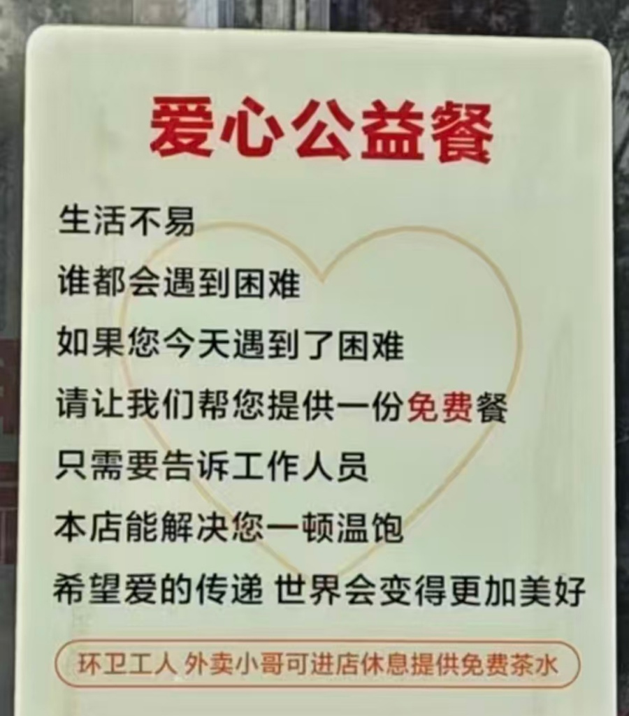 如今,这家饭店的爱心善举早已超出了免费餐的范畴。夏天备好解暑绿豆汤,冬天熬制驱寒姜枣茶,店里常年为户外工作者预留休息座位,充电接口、应急药箱等便民设施一应俱全。20多年坚守,没有惊天动地的壮举,却用一碗碗热饭、一杯杯热茶,在城市里搭建起温暖的桥梁。这份跨越时光的公益担当,不仅温暖了无数人的旅途,更让爱心在街头巷尾不断传递,为南阳这座城市增添了最动人的文明底色。