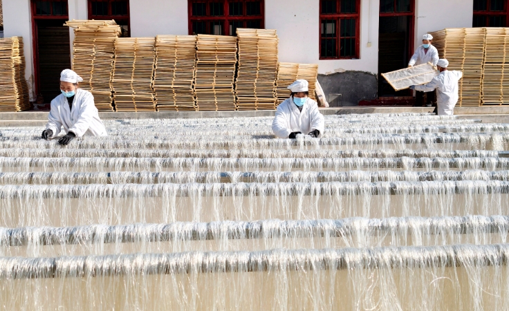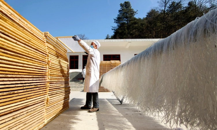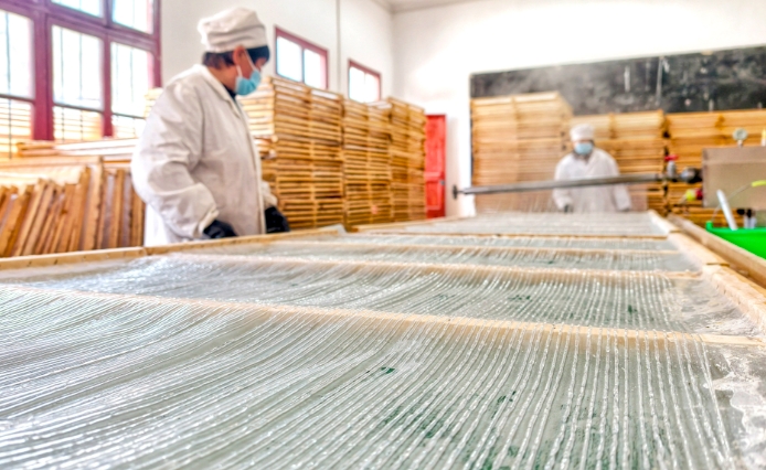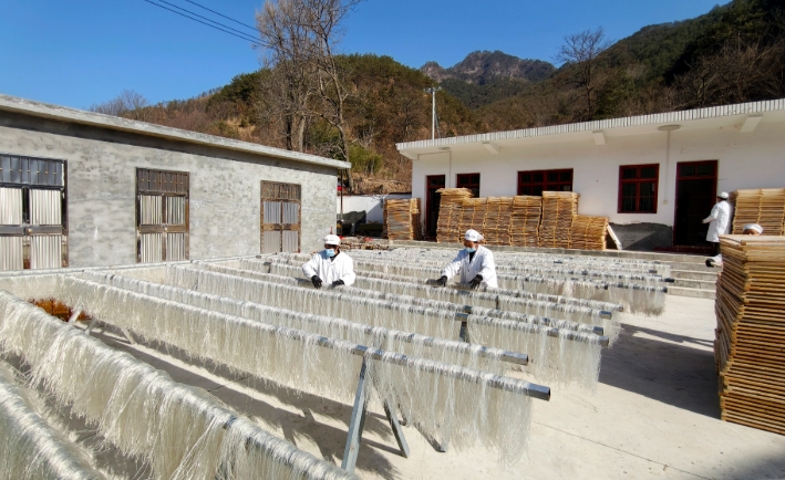 该镇依托盛产优质土豆的优势,延伸产业链条,发展粉条加工产业,生产的特色土豆粉条畅销省内外,助力群众增收和乡村振兴。