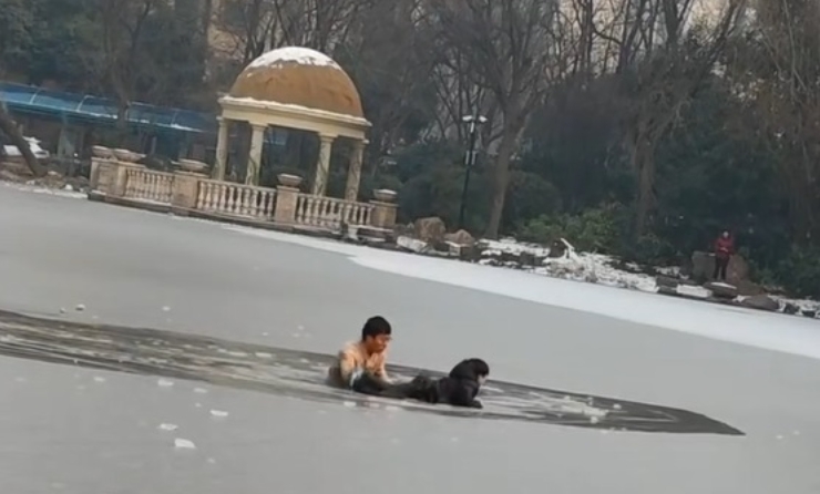 洛阳:儿童落入人工湖冰水中,陌生男子奋不顾身救援