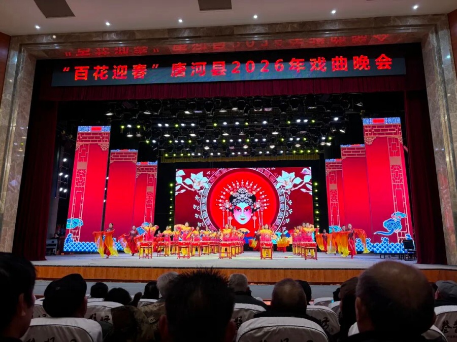 1月30日下午,唐河县文联、县剧协策划主办的“百花迎春”——唐河县2026年迎春戏曲晚会在唐州大剧院隆重举行。县内各文艺团队成员与千余名群众欢聚一堂,共赏梨园雅韵,共迎新春佳节。