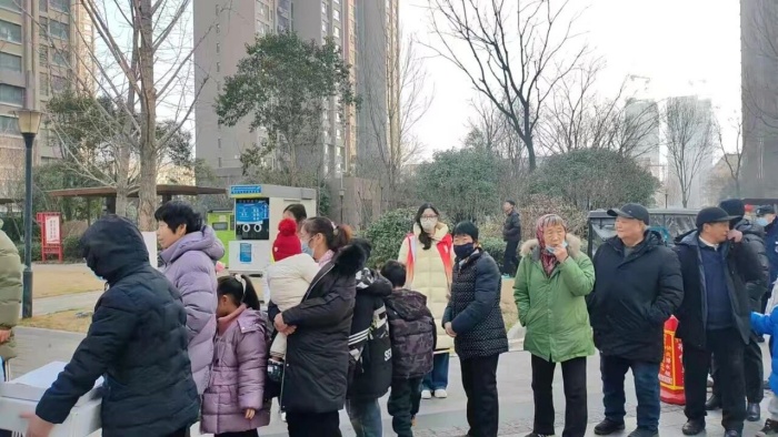 派送现场暖意融融,社区与物业工作人员、大学生志愿者们有序分发春饼,脸上洋溢着真诚的笑容。“阿姨,这是给您的春饼,祝您新岁平安喜乐!”“小朋友,拿着春饼和家人一起‘咬春’呀!”一句句暖心的祝福,让居民们倍感亲切。闻讯而来的居民们自觉排队,邻里间相互问候、闲话家常,空气中弥漫着春饼的香气与节日的欢悦。不少居民拿到春饼后当场展开,忍不住赞叹:“这春饼又薄又软,看着就好吃,社区和物业太贴心了,提前感受到了过年的味道!”