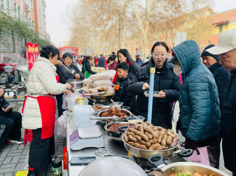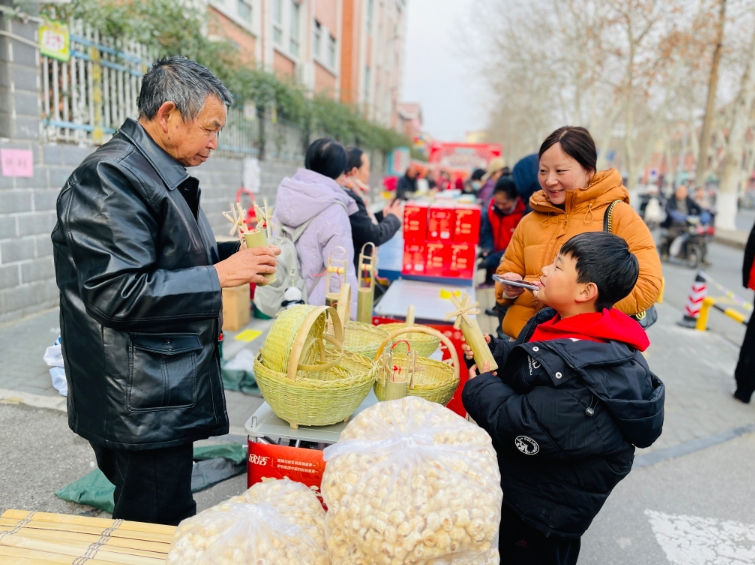 “以前办年货得跑超市好几趟,现在下楼就能买到地道的农家特产!”推着小车的梁英杰老人采购了粉条、麻花、卤味、草莓等商品,满意地说,“你看这粉条透亮筋道,一看就是好手艺。”