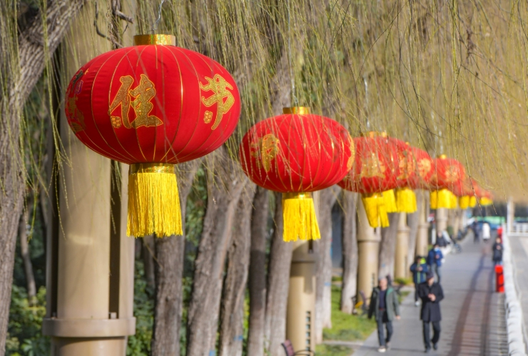 2月11日,春节临近,我市街头、景区张灯结彩、处处洋溢着喜庆祥和的节日氛围,年味儿十足。