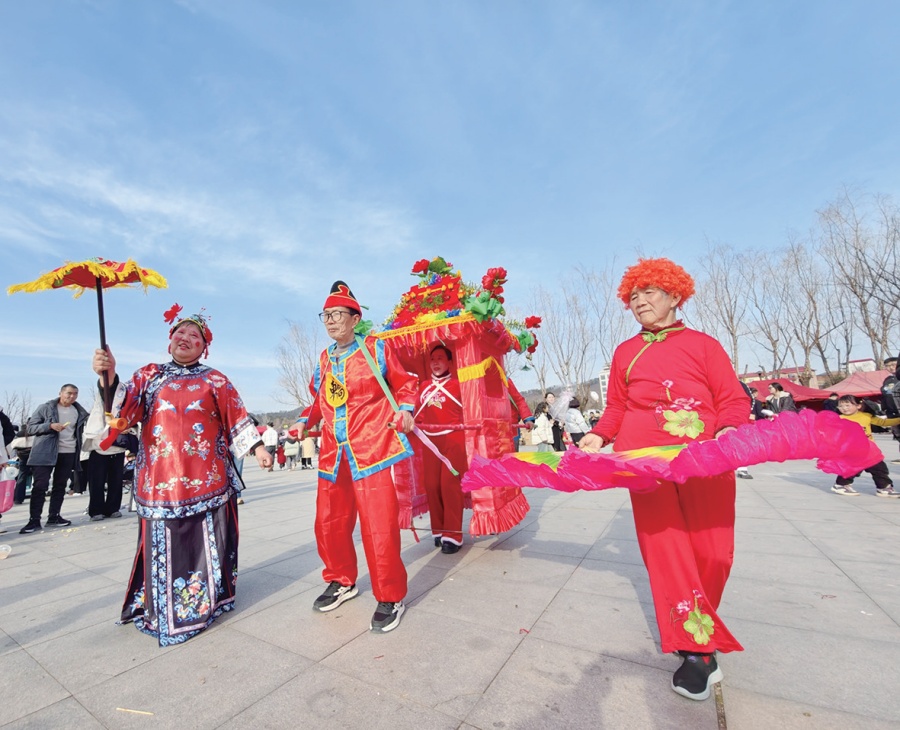 南召街头民俗表演闹新春