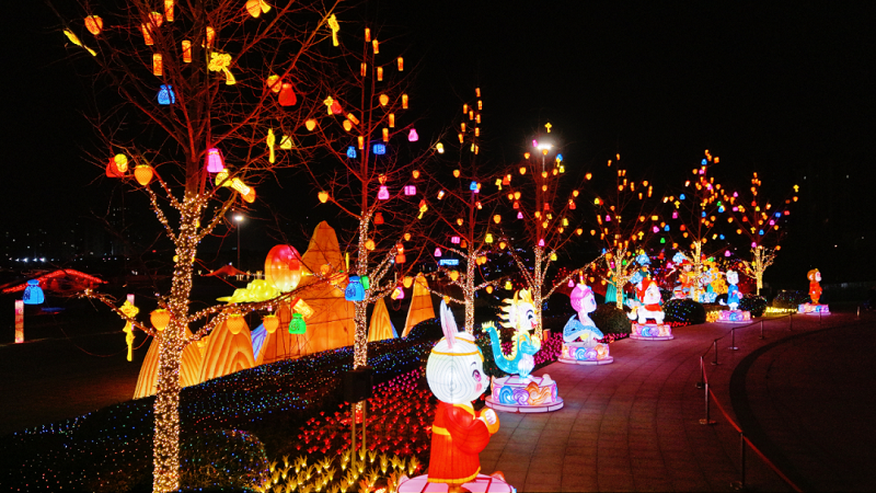 沙澧河风景区处处流光溢彩、热闹非凡,大型主题灯展、非遗展演、民俗互动等精彩活动轮番上演,为游客打造了一场集视觉震撼、听觉享受、沉浸式体验于一体的新春文旅盛宴。在银滩乐园推出沙澧河元灯会灯展暨民俗狂欢季活动,年味与创意十足的马年专属灯组、灵动鲜活的十二生肖灯组、奇幻瑰丽的山海经系列灯组错落有致,搭配氛围感满满的投影亮化效果,使得现场浪漫唯美、意境悠长。
