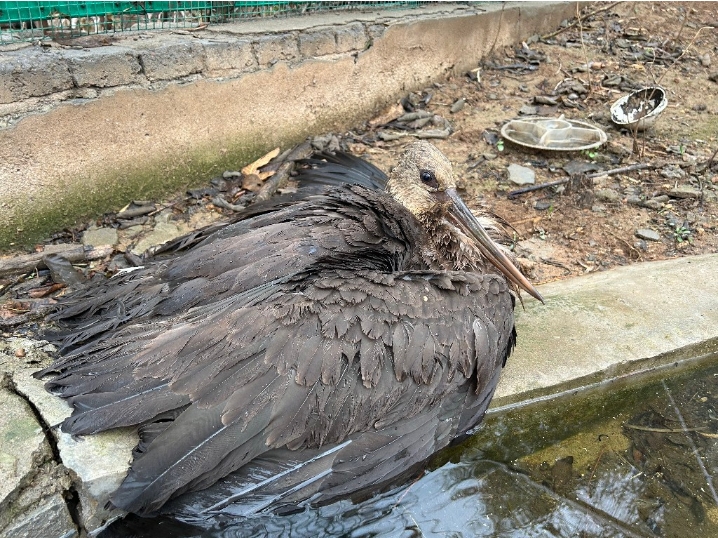 工作人员初步检查发现,这只黑鹳左翅膀受伤,无法正常飞行,推测可能因近期气温变化导致体力不支或食物短缺而落单。2月26日,它被安全送至洛阳市野生动物救助中心。中心为其准备了新鲜的泥鳅、小鱼,并补水补盐,安排单独隔离观察,确保安静舒适的恢复环境。