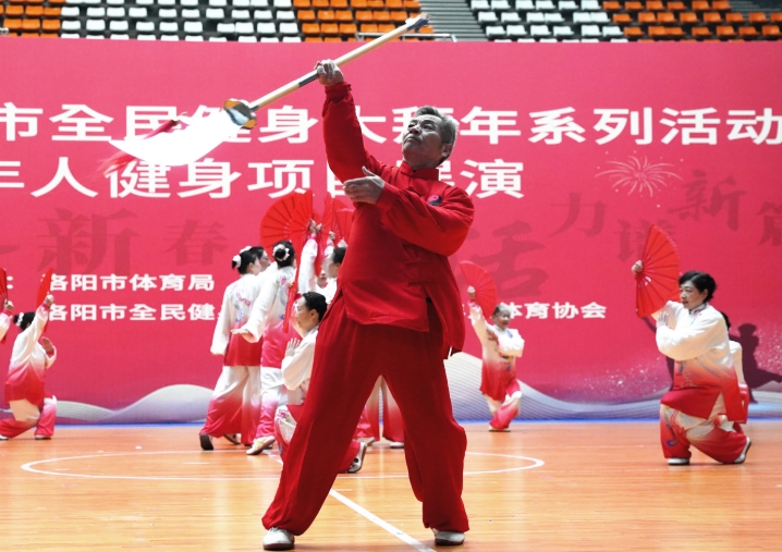2月27日,2026年洛阳市全民健身大拜年系列活动——老年人健身项目展演在洛阳市洛龙区全民健身中心圆满举行。近700名老年朋友以矫健身姿、饱满热情,在马年新春的喜庆氛围中,绽放“老有所健、老有所乐”的别样风采。