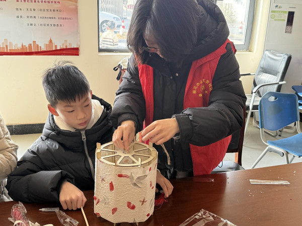 活动现场,手工灯笼制作区成为当之无愧的“人气焦点”,吸引了大批居民尤其是小朋友的热情参与。活动伊始,工作人员耐心细致地讲解灯笼制作的步骤与技巧,手把手指导大家裁剪彩纸、固定骨架、粘贴装饰。孩子们在家长的陪伴下,充分发挥想象力和动手能力,剪、折、粘有条不紊;大人们则互相交流制作心得,分工协作,现场氛围温馨而热烈。不一会儿,一盏盏造型各异、色彩鲜艳的灯笼陆续完成,承载着大家对新年美好生活的期盼与祝福。