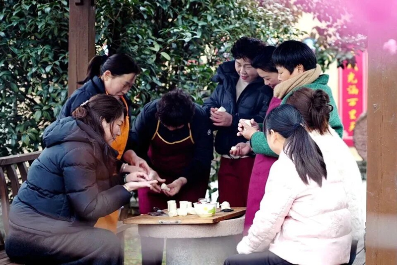 3月2日,永城市演集街道时庄文化艺术村农家院前的凉亭里一片欢腾,热闹非凡,一场以“‘我们的节日·元宵节’捏面灯传民俗、文明实践润民心”为主题的活动在此开展。时庄文化艺术村入驻艺术家、非遗面塑传承人刘亚茹和村民们纷纷响应,你家出面,我家出油、红枣、黑豆等食材,大家围坐在鸟语花香的凉亭中,齐心协力捏面灯。