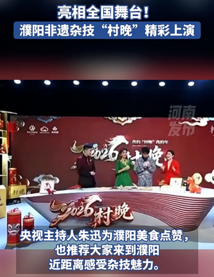 腊月二十三,春风初至,中原杂技博物馆广场人声鼎沸。东北庄“我的村晚我的年”盛大启幕,手技行云流水,绳技翩若惊鸿,顶板凳、钻地圈等经典技艺轮番上演,观众屏息凝神、喝彩连连。作为全国“四季村晚”示范展演,这场盛会通过国家公共文化云直播,吸引20.8万人次云端共赏;央视主持人朱迅对裹凉皮、壮馍的盛赞,更让濮阳烟火气随非遗技艺一同传遍神州。