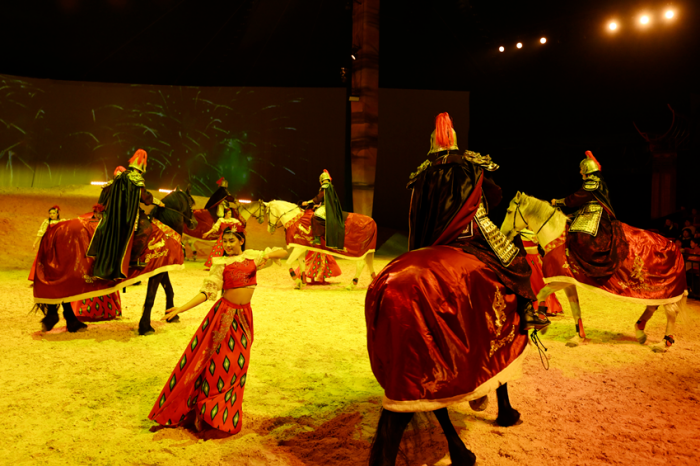 从除夕至元宵节,水秀剧场光影流转,奇幻龙都大秀震撼开演。《沙秀舞马·木兰无界》全球首演,将马年气韵与杂技精髓相融,骏马踏风奔腾,演员凌空展技,全息投影、数控沙画与光影科技交织,演绎木兰从军的家国情怀,铸就全国首创的沙幕马术传奇。东北庄杂技展演、水秀原创大秀获20余家中央、省级媒体聚焦,百万级点击量让濮阳杂技的影响力再度跃升。