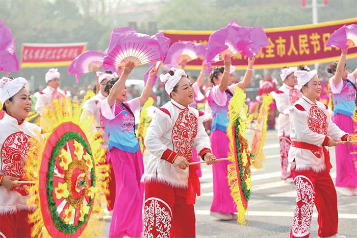 同样,承留镇北石村《趣鼓锣欢·捷音飞》的表演者平均年龄70岁,大家老当益壮,激情满满。78岁的王进保年龄最长,神采奕奕。“我每年都来,能在市区表演,真是开心得不得了。”王进保说。