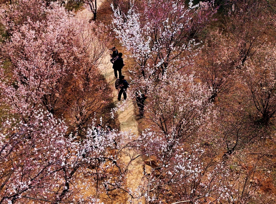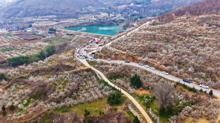 阳春三月,南阳市镇平县老庄镇樱桃沟和方城县赵河镇北陈庄村,漫山遍野的樱桃花竞相绽放,如诗如画的田园美景吸引游客前往踏青赏樱,感受春天的气息。