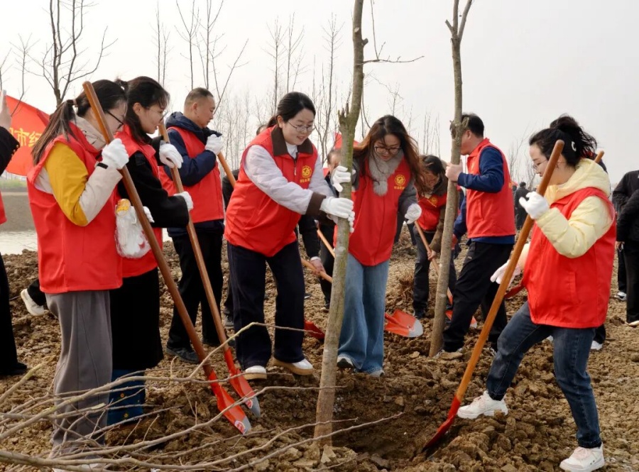 春满中原,绿意萌动。3月12日,南阳市在宛城区金华镇曾庄村涧河畔开展春季义务植树活动,来自市直各单位的300余名干部职工栽下2000株楸树、杜仲,为正在实施治理的涧河段增添一片新绿。