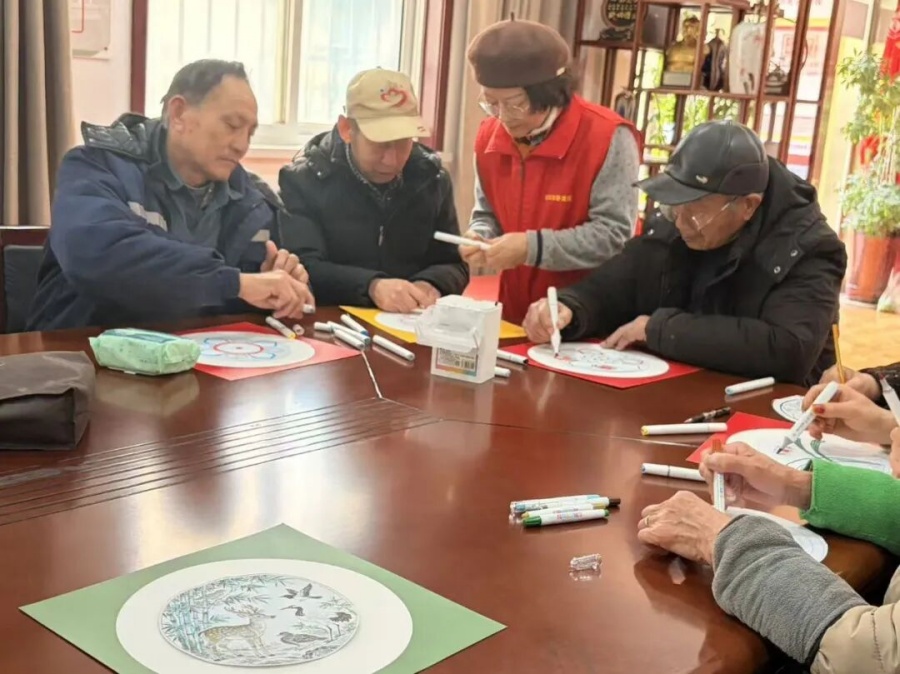志愿者与长辈们围坐一堂,话家常、忆往昔,分享人生阅历与养生心得,现场氛围温馨融洽。老人们围绕“智慧传家”“安心养老”“乐享晚年”三大核心展开讨论。长辈们各抒己见,分享自己的家风教育心得,在交流中碰撞思想、收获共鸣。活动还设置了静心彩绘环节,长辈们手持画笔随心涂色,将对生活的美好期许与祝福融入色彩之中,在创作中凝神健脑、收获快乐,有效丰富了精神生活,助力预防认知衰退。