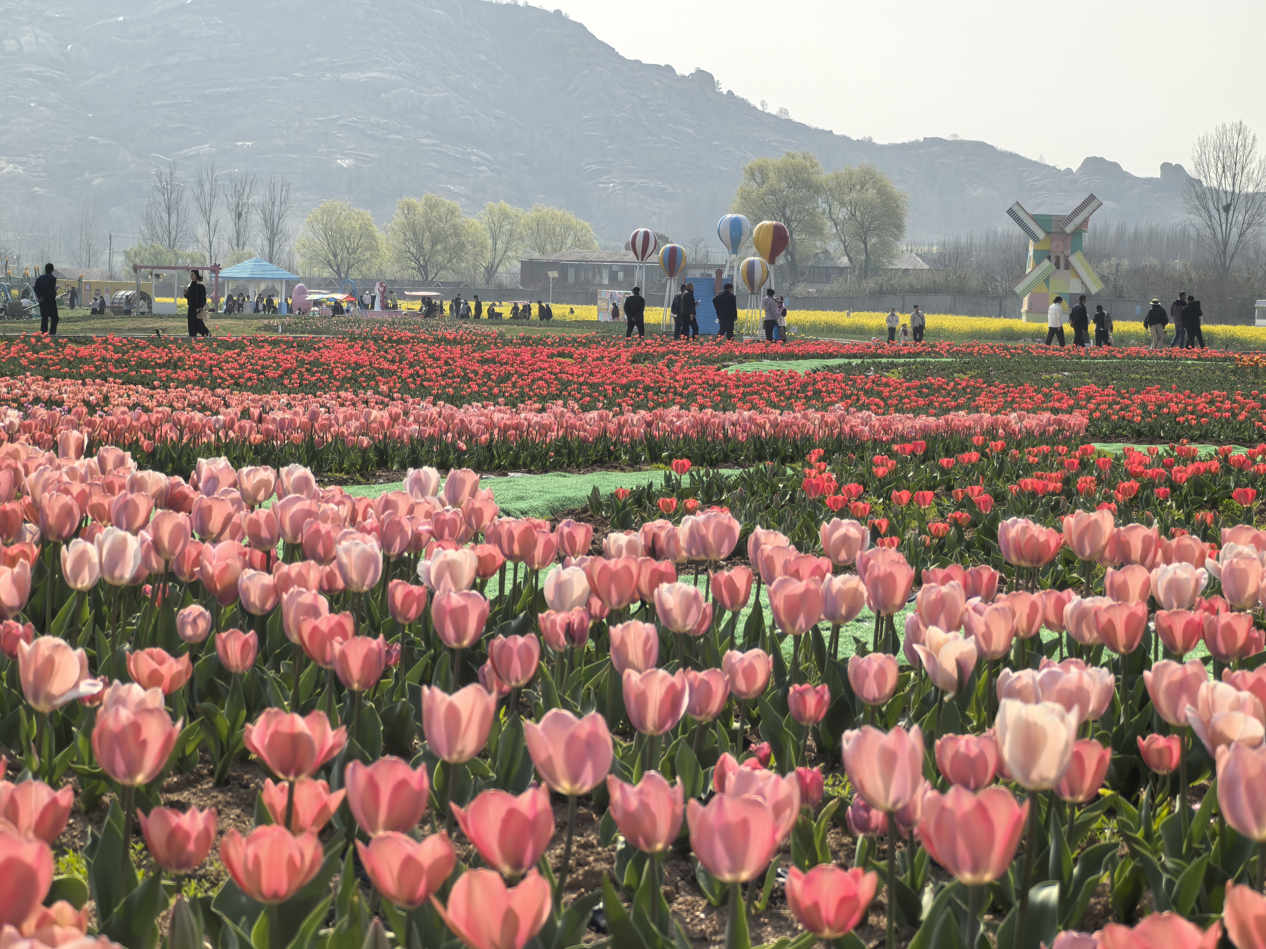 3月22日,位于驻马店嵖岈山风景区的嵖岈山郁金香主题花海正式开园。近400万株郁金香竞相绽放,如锦缎般铺展大地,吸引大批游客在花海中打卡拍照,共享这场春日限定的视觉盛宴。