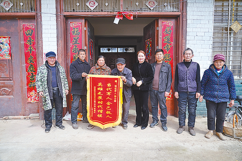 “感谢您培养的好儿子,要不是他,我儿子就没命了!”日前,在正阳县永兴镇万安村,一幕感人的场景温暖了初春的乡村。村民张猛的父亲张耀红、母亲谢大枝眼含热泪,将一面印有“当代军人舍己救人 英雄无畏时代楷模”的锦旗郑重递到现役军人杨云晖的父亲杨俊锋手中(如图)。这份沉甸甸的谢意源于一个月前一场惊心动魄的生命救援。