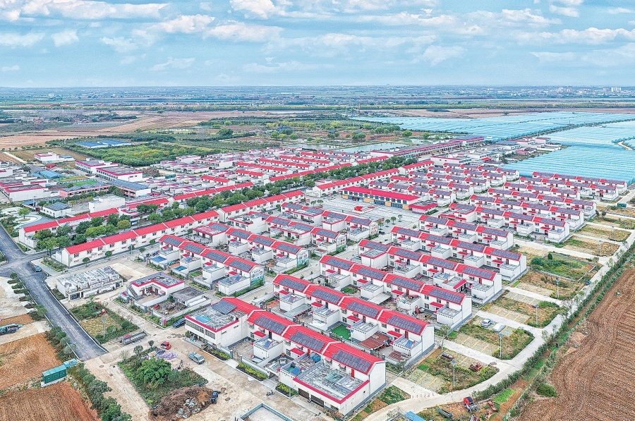 淅川县移民新村红顶连片,镶嵌在沃野与大棚之间,绘就南水北调“搬得出、稳得住、能致富”的新生图景。