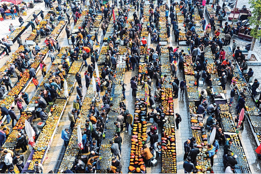 俯瞰镇平县玉石集市,客商络绎不绝,尽显玉石产业活力。