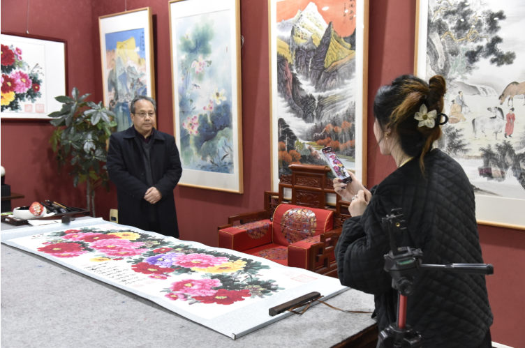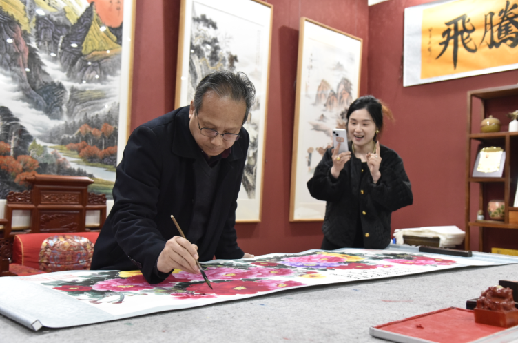 郑虎松、司润芳夫妇便是培训的受益者。那时,夫妻俩果断关掉自家开了多年的照相馆,一头扎进牡丹画创作中。如今,他们的店面已成为集创作、装裱、销售于一体的牡丹画专卖店,见证着平乐牡丹画产业从无到有、从小到大的发展历程。