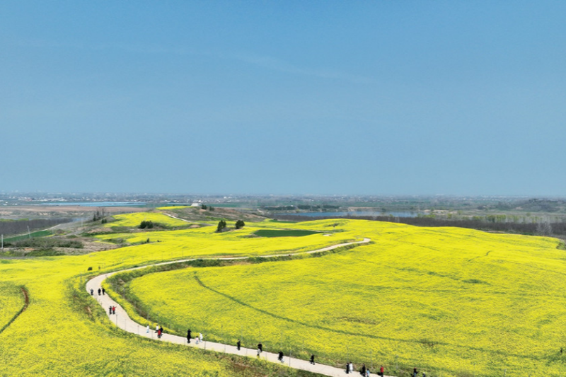 (平桥区胡店乡上淮金龙湾生态农旅融合发展试验区内的油菜花海)