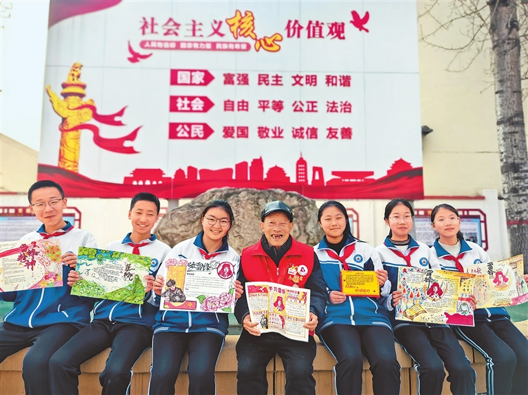 3月20日,新乡市第九中学校园操场边,一场特别的宣讲会正在进行。一位个头不高、略显驼背的老人,正用沙哑却饱含深情的声音向孩子们讲述着雷锋的故事。