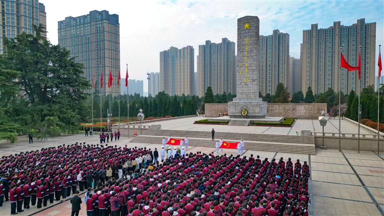清明节前夕,郑州市郑东新区康平小学组织师生代表到郑州烈士陵园缅怀先烈。