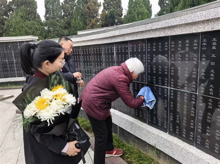 王玉德烈士的亲人到位于安徽的淮海战役双堆集烈士陵园祭奠。