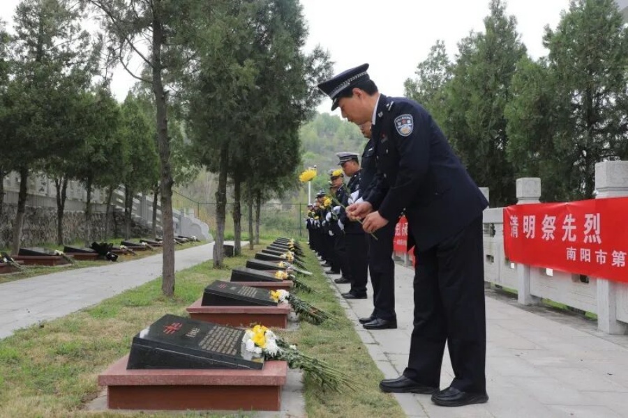 清明节前夕,南阳市公安局组织百名民辅警代表到南阳烈士陵园开展“清明祭英烈”活动,深切缅怀革命先烈和公安英烈的丰功伟绩,传承和弘扬英烈精神,凝聚新时代公安队伍奋进力量。