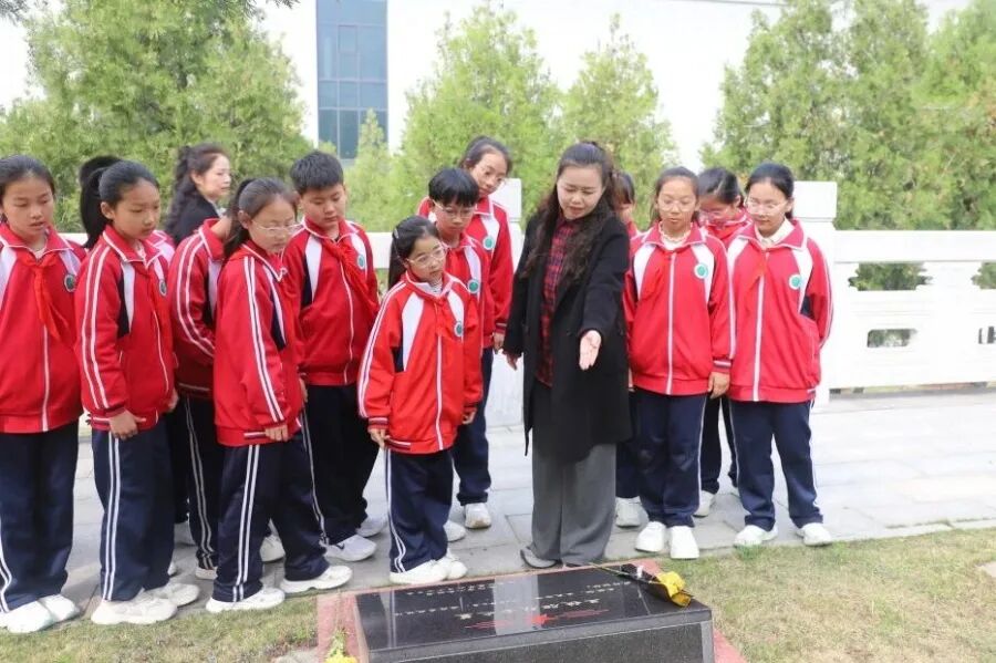 在庄严肃穆的烈士纪念碑前,全体师生齐唱国歌,少先队员代表敬献花篮,向长眠于此的英烈致以崇高敬意。活动中,师生们手持洁白的菊花,将花朵轻轻安放在纪念碑前与烈士墓旁。大家绕行瞻仰烈士墓群,认真聆听英烈革命事迹。在红25军独树镇战斗遗址现场,老师们结合实景,深情讲述1934年红二十五军长征途中鏖战独树镇的惊心动魄历程,同学们凝神聆听、心潮澎湃,将先烈的英勇精神深深镌刻于心。