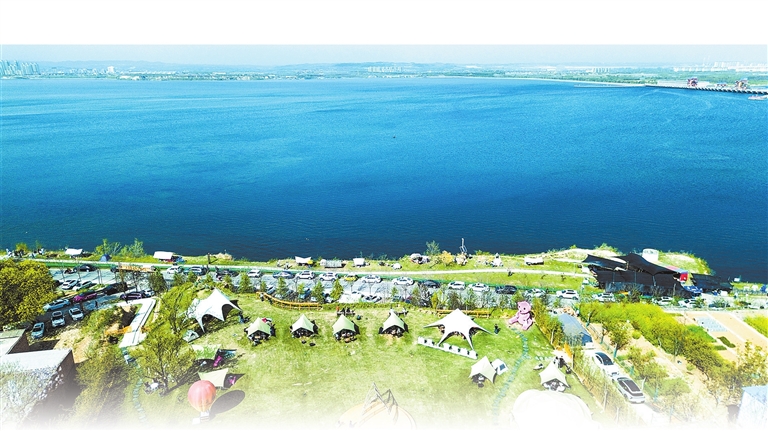 4月5日,游客在洛阳市孟津区白鹤镇境内的黄河生态廊道生态观景平台和观光驿站露营休闲。