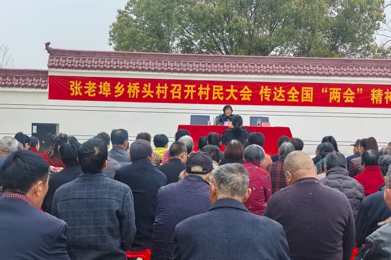 春和景明,万象更新。近日,信阳市固始县张老埠乡桥头村的村民大会如期举行。大会伊始就迎来了“重头戏”——全国人大代表、村党支部书记汪荣秀上台,向父老乡亲宣讲全国两会精神。