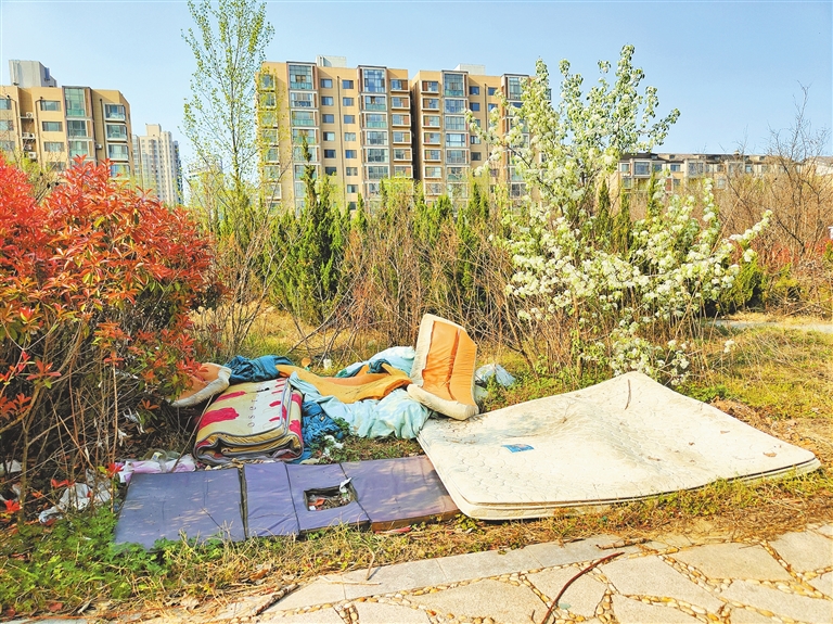 开封植物园一期园区内随意堆放的生活垃圾。