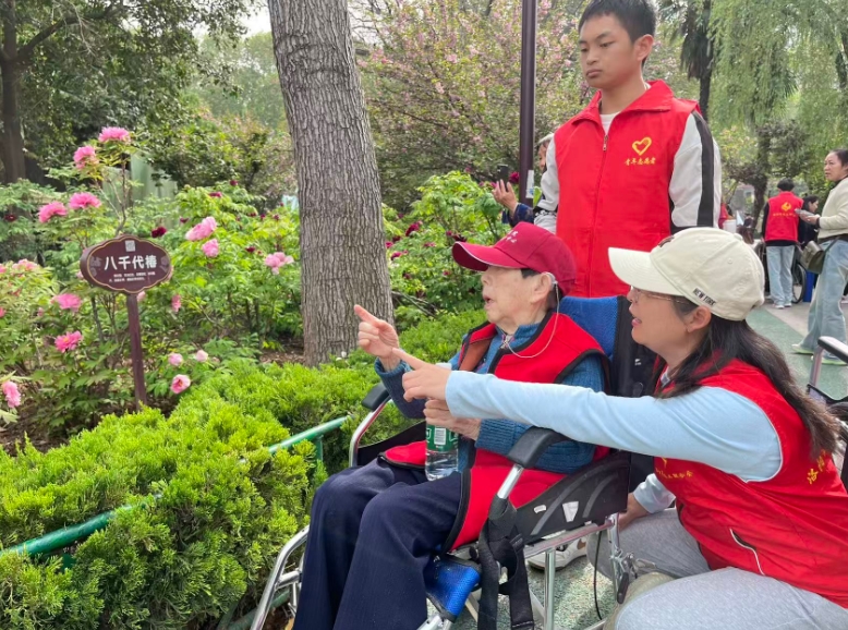 这温情一幕,正是洛阳市义工联合会发起的一场关爱失能长者春日游园公益活动。牡丹花海旁,志愿者们推着轮椅,或俯身与老人闲话家常,或为老人拍摄专属牡丹合影,成为公园中一道格外动人的风景。